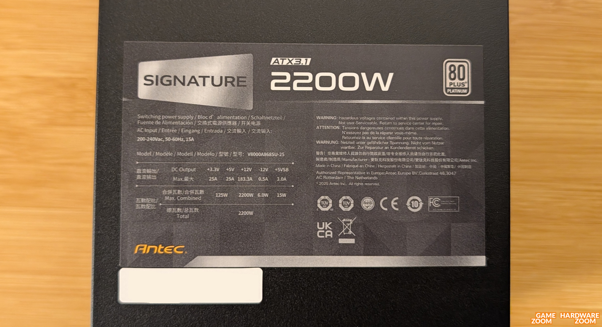 “Mit dem Signature 2200W liefert Antec ein kompromissloses High-End-Netzteil ab, das sich klar an Enthusiasten, Workstation-Nutzer und extreme Multi-GPU-Systeme richtet. Die enorme Leistungsreserve von 2.200 Watt, kombiniert mit ATX-3.1-Support und modernen 12V-2×6-Anschlüssen, macht die PSU zukunftssicher selbst für leistungshungrigste Grafikkarten-Generationen.