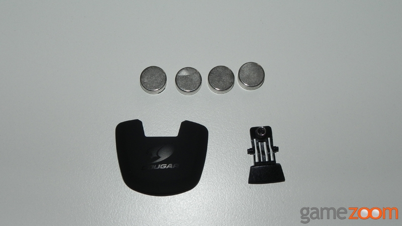 Die 700M nimmt Anleihen bei der R.A.T. von Mad Catz. Die Maus misst 127 × 83 × 38 mm und bringt 110 Gramm auf die Waage - das Gewicht kann mittels vier Metallstücken auf 128 Gramm erhöht werden. Bei der Verarbeitung setzt Cougar auf hochwertige Bauteile: Nicht nur die Bodenplatte besteht aus Aluminium, auch der Rahmen besteht aus diesem Material, was die Stabilität enorm verbessert. Die offene Struktur der 700M soll hingegen belüftende Funktion haben und schwitzenden Handflächen vorbeugen, wobei sich die hierfür vorgesehene Auflage durch eine kleinere „Sport“-Version tauschen sowie für verschiedene Griffe (Claw und Palm Grip) in der Höhe verstellen lässt. Zur Eingabe stehen insgesamt 8 Tasten zur Verfügung, die allesamt frei programmierbar sind. Das Zwei-Wege-Mausrad selbst ist natürlich auch als Taste nutzbar. Unter den Haupt-Maustasten befinden sich hochwertige sowie langlebige Omron-Switches (10 Millionen Klicks laut Hersteller), die über einen leichten und direkten Druckpunkt verfügen, was wir während unserer Testphase als überaus positiv empfanden. Auch das leichtgängige Mausrad mit mittelstarker Rasterung konnte uns überzeugen. Fünf längliche Teflonfüßchen sorgen für eine hohe Gleitfähigkeit. Das zwei Meter lange und stoffummantelte Mauskabel ist sehr flexibel. Die Verarbeitung der Maus selbst geht durchweg in Ordnung, hier gibt es nichts zu meckern. Alles passt, nichts knarzt vor sich hin und auch die Spaltmaße sind gut.