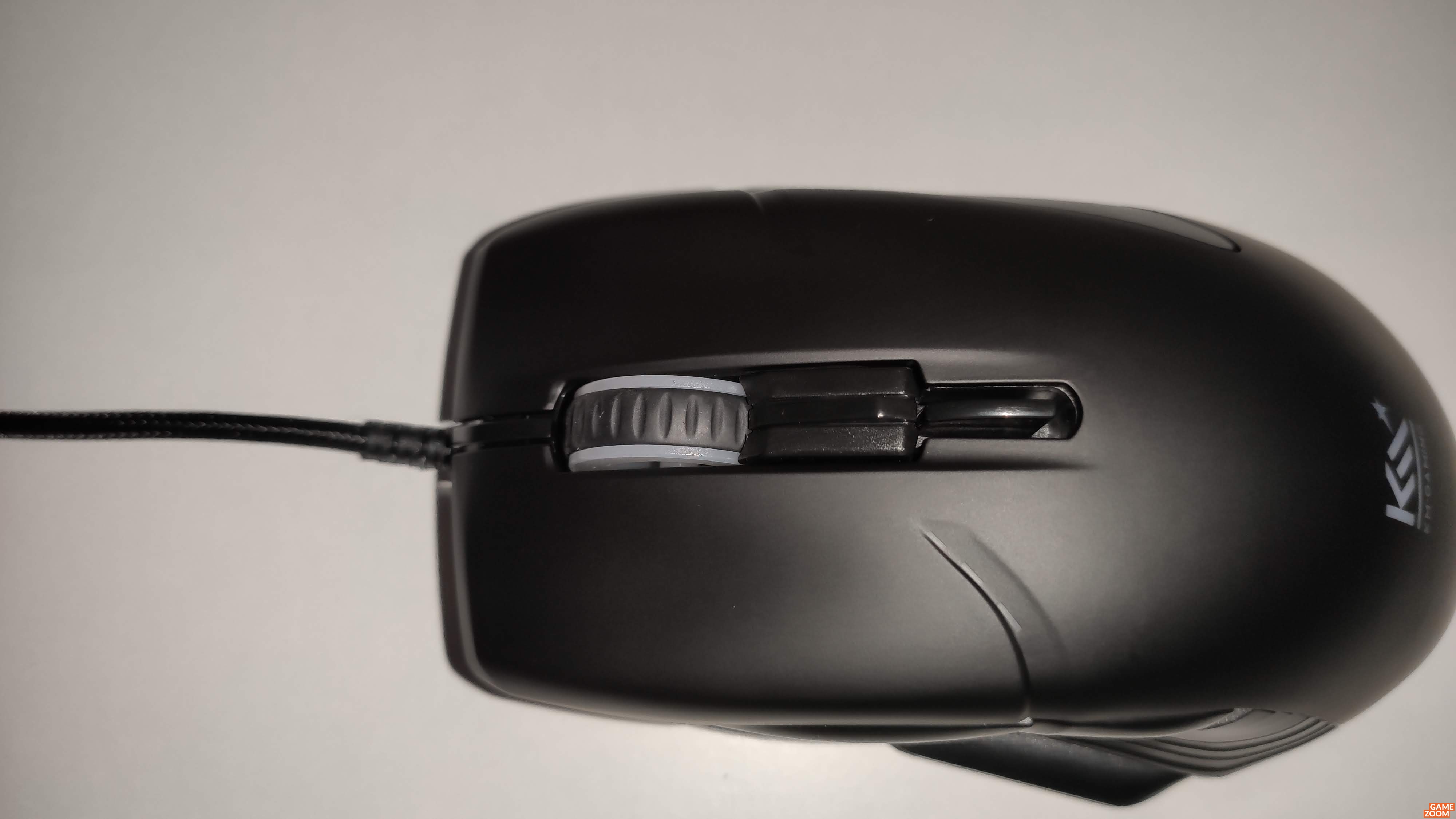 Darüber hinaus gibt es am Boden des Nagers eine dedizierte Taste zum Durchschalten der drei Onboard-Profile. Unter den beiden Haupt-Maustasten befinden sich hochwertige sowie langlebige Omron-Switches (50 Millionen Klicks laut Hersteller), die über einen leichten und direkten Druckpunkt verfügen, was wir während unserer Testphase als überaus positiv empfanden. Auch das leichtgängige Mausrad mit mittelstarker Rasterung konnte uns überzeugen. Das textilummantelte USB-Kabel misst ausreichend lange 1.8 Meter. Drei große Teflongleiter an der Unterseite sorgen für eine hohe Gleitfähigkeit. Die Verarbeitung der Maus selbst überzeugt, hier gibt es nichts zu meckern. Alles passt, nichts knarzt vor sich hin und auch die Spaltmaße sind gut.