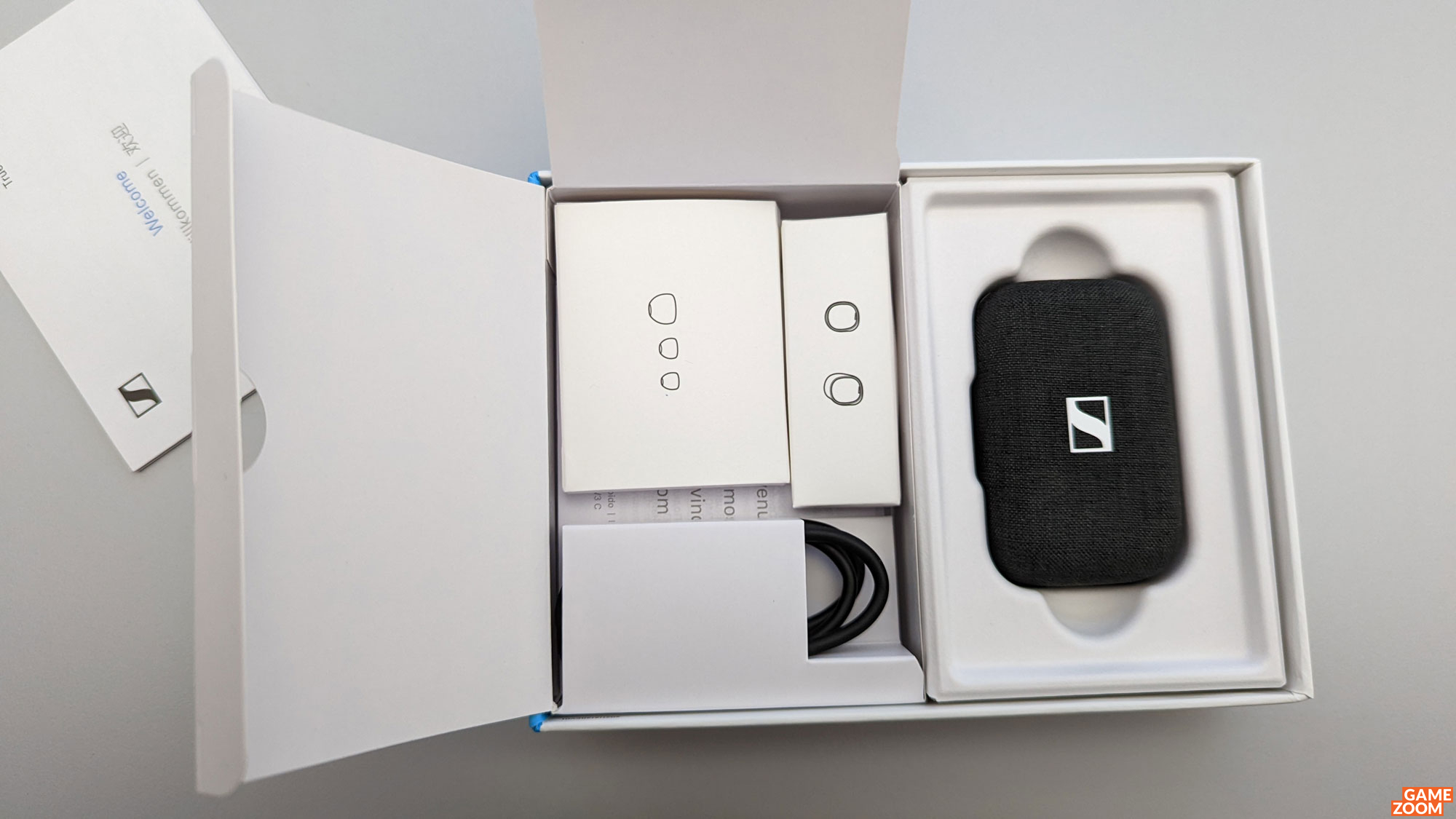 Der Momentum True Wireless 3 kommt in einem stabilen Karton in unserer Redaktion an. Unser Testmuster, welches es wahlweise in den Farben Grau, Weiß oder Schwarz gibt, wurde sehr wertig verarbeitet und bringt 11.6 Gramm auf die Waage (5.8 Gramm pro Ohrhörer). Der Lieferumfang besteht aus einer stabilen Aluminium-Ladebox mit Stoffbezug, in der die In-Ears über kleine Kontaktflächen aufgeladen werden. Auf der Vorderseite befindet sich eine Status-LED, worüber sich der Ladestand des Case erkennen lässt. Grün bedeutet vollgeladen, bei Gelb ist der Akku halbvoll und bei Rot ist der Akku des Ladecase fast leer. Das Case misst 59 x 33,8 x 42,3 mm und wiegt 54.8 Gramm. Ebenfalls mit von der Partie: ein USB-C-Ladekabel und drei verschiedene Paare an Silikon-Ohreinsätzen, zusätzlich zu denen, die bereits vormontiert sind.