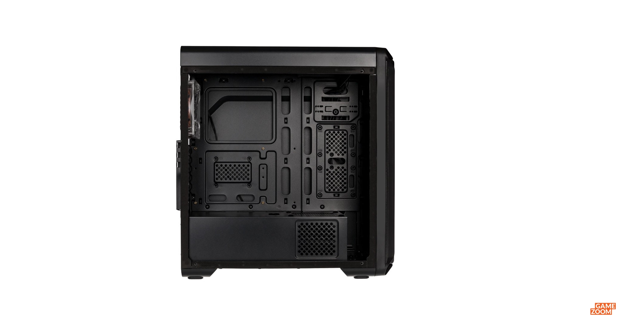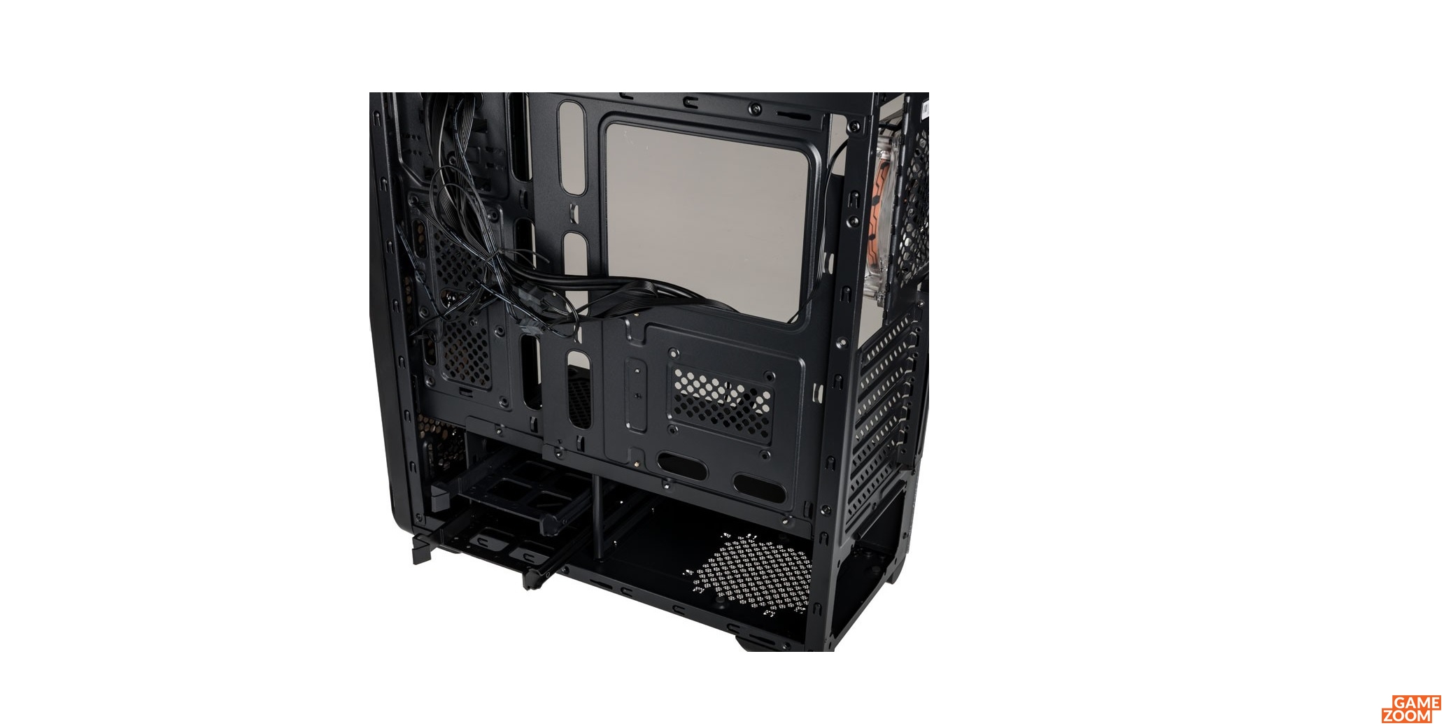 Das Gehäuse bietet ausreichend Platz im Innenraum für bis zu 15.6 Zentimeter hohe CPU-Kühler, sieben Erweiterungskarten und Mainboards bis zum ATX-Format. Die maximale Grafikkartenlänge beträgt 36 Zentimeter.