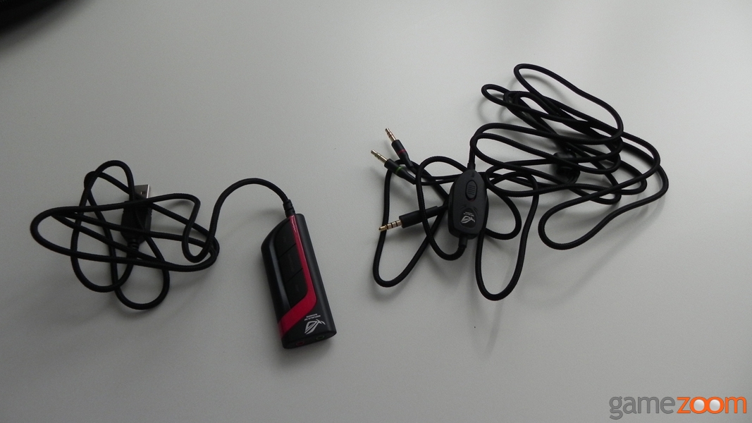 Für den Betrieb des Headsets benötigt man keine separate Soundkarte, da bereits im Lieferumfang ein 7.1-fähiges USB-Modell enthalten ist (Plug&Play - Windows XP, Vista und 7). Per Umschalter bietet der Spitfire-Prozessor drei Funktionsmodi: Die „FPS EQ Technologie“ arbeitet Lauf- und Schussgeräusche in Spielen besonders gut heraus, um so eine präzise Ortung dieser Klangquellen zu ermöglichen. Der „7.1 Virtual Surround Modus“ verbessert den Klang der Surround-Darstellung von Spielen. Der dritte Modus passt die Akustik dynamisch an das Spielgeschehen an. In unserem Alltagstest (Battlefield 3, Counter-Strike: Global Offensive, Blu-ray-Filme und Audio-CDs) schlägt sich das Headset sehr gut. Klare Höhen und kräftige Bässe sind kein Problem für das ASUS Headset. Auch bei hoher Lautstärke konnten wir keine Verzerrungen wahrnehmen. Lediglich der Mitteltonbereich könnte etwas ausgeglichener sein.