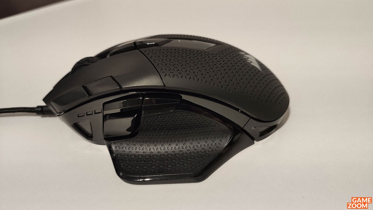 Das stoffummantelte und flexible Datenkabel misst ausreichend lange 1,8 Meter. Für optische Akzente sorgt die anpassbare 4-Zonen-RGB-Beleuchtung (Logo, Mausrad, Front und Rückseite; anpassbar in der Software).