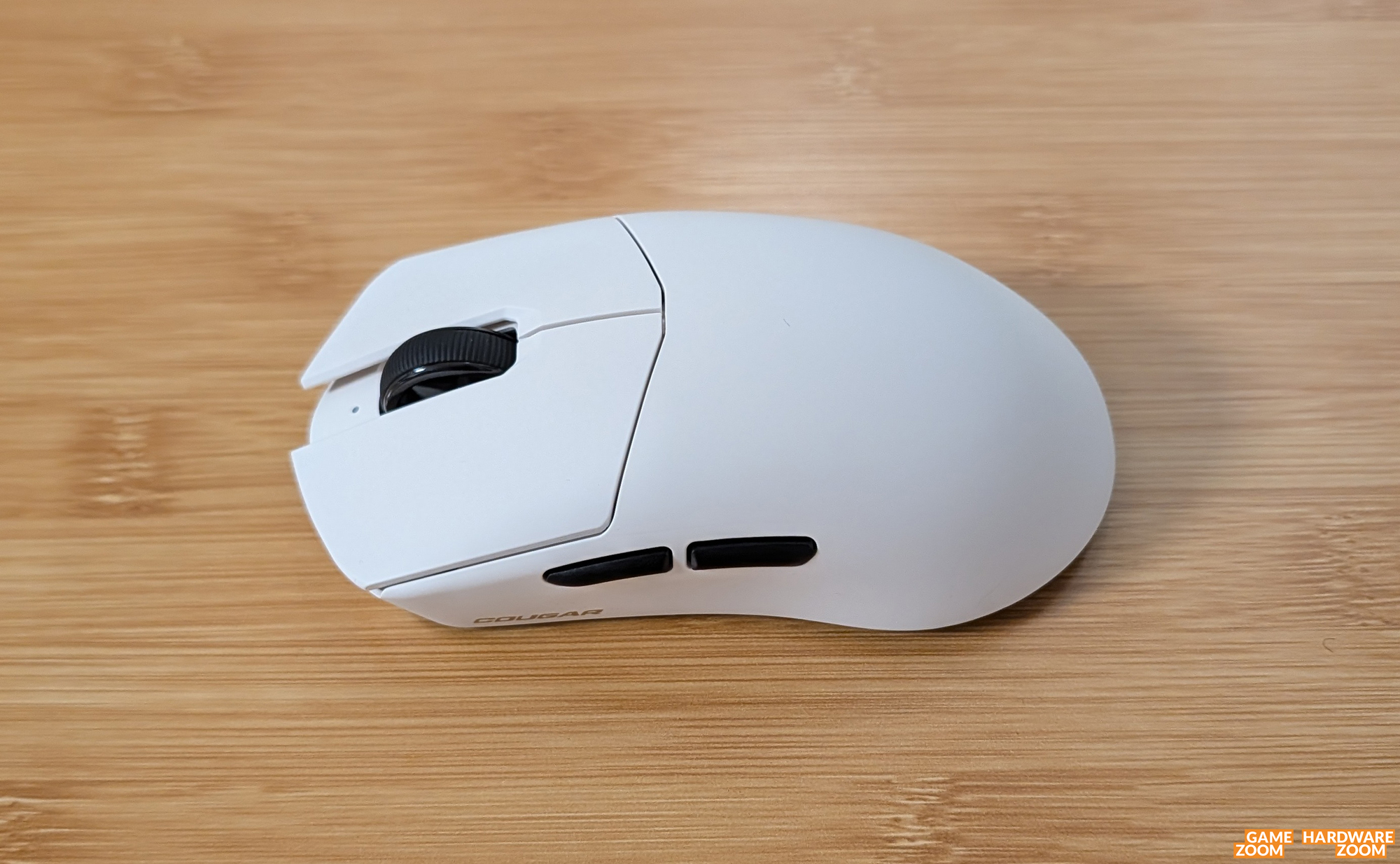 Der Nager misst 65x38x124 mm (BxHxT) und eignet sich daher ideal für Spieler mit (mittel)großen Händen. Das Gewicht der Maus liegt bei gerade einmal 55 Gramm (mit Akku und ohne Kabel). Die Verarbeitung ist sehr gut und die Materialwahl lässt die Maus durchaus hochwertig erscheinen. Zur Eingabe stehen insgesamt vier Tasten zur Verfügung, die allesamt frei programmierbar sind. Das Zwei-Wege-Mausrad selbst ist natürlich auch als Taste nutzbar. Unter den beiden Haupttasten wurden moderne mechanisch-optische Schalter von Omron (Omron 70M Optical Switch) verbaut. Die Schalter verfügen über einen leichten und direkten Druckpunkt, was wir während unserer Testphase als überaus positiv empfanden. Laut aktuellem Stand haben die Switches eine Lebensdauer von 70 Millionen Klicks.