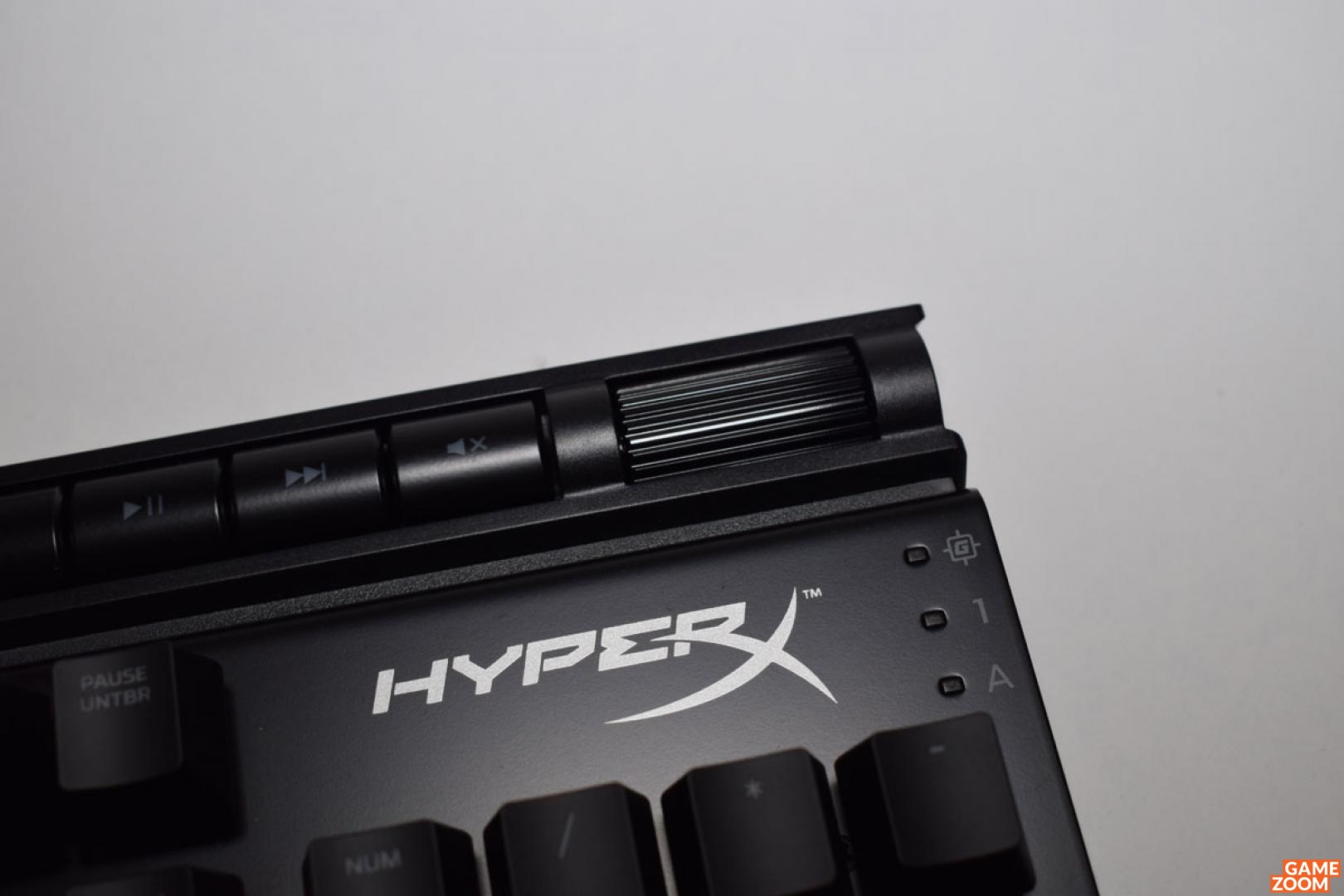 Die HyperX Alloy Elite ist mit einer roten LED-Hintergrundbeleuchtung mit sechs voreingestellten LED-Modi sowie einem Lichtbalken mit 18 LEDs und individuell anpassbaren Modi ausgestattet. Außerdem verfügt das Keyboard über dedizierte Multimedia-Buttons: eine große Lautstärkenwalze an der rechten Seite und Schnellzugriffstasten für die Helligkeit, Beleuchtungseffekte und den Gaming-Modus (Windows-Tasten deaktivieren).