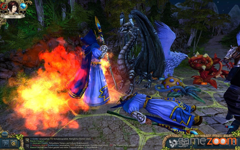Beide Klassen haben ihre Vor- und Nachteile. So kann der Magier starken Zauber während einer Schlacht wirken und so seine wenigen Krieger unterstützen. Die Menge an Rekruten, die der Charakter mit sich führen und in den Kämpfen einsetzen kann, hängt von der Führungskraft der Prinzessin ab. Je höher diese ist, desto mehr Soldaten, Bogenschützen, Magier, Spinnen, Elfen, Wölfe und noch viele, viele mehr kann der Spieler befehligen. Zwar können nie mehr als fünf Truppen mit in die Schlacht genommen werden, doch die Anzahl der Krieger kann variieren. Spezielle Talente der Truppen bieten einen auch oft eine hohe Überlegenheit gegenüber dem Feind. So könnt ihr z.B. mit "Greifen" eure Truppenstärke teilen und erhaltet somit eine weitere Einheit am Feld. Auch spezielle Hiebe von Soldaten ermöglichen es gleich mehrerer Gegner anzugreifen. Viele dieser kleinen Optionen und die Möglichkeit seinen Drachen in den Kampf mit einzubeziehen machen die Schlachten spannend und bieten viele Möglichkeiten zu gewinnen.