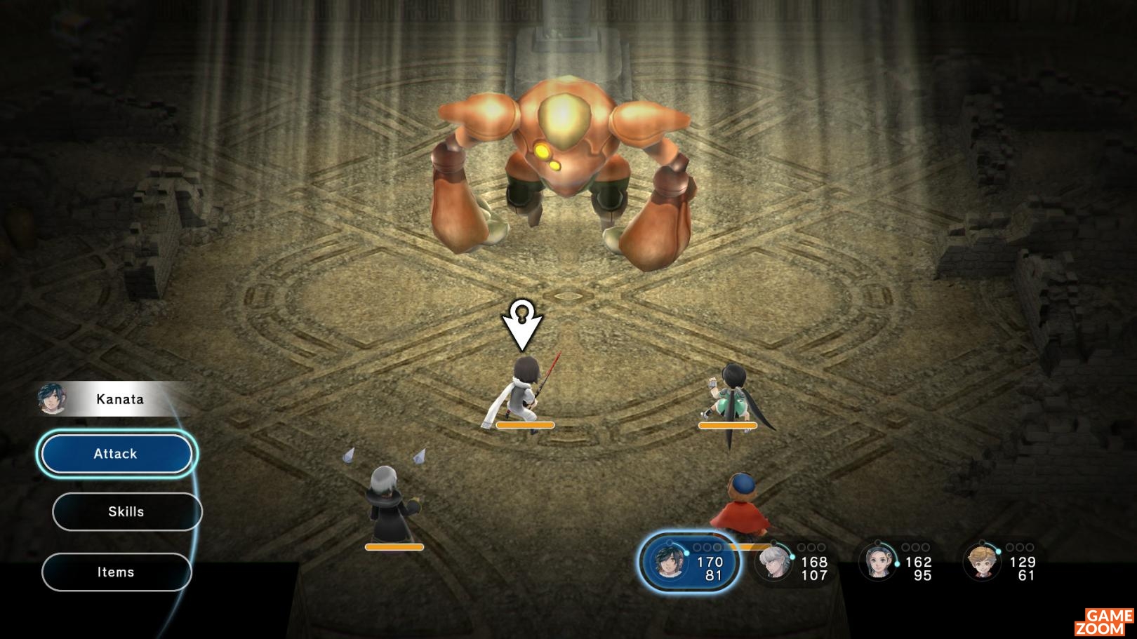 Und damit wir noch eine gehörige Portion Abwechslung bekommen, wirft Lost Sphear Kampfmechs mit in die Gleichung, die zwar nur begrenzt genutzt werden können, aber einen neuen Spin auf unsere Fähigkeiten bieten. Trotzdem bleiben viele Kämpfe zwischen den Bossgefechten meist eher flach. Und treffen wir dann auf die zahlreichen Bosse, stellen wir fest, dass die Kämpfe entweder beinhart sein können oder unglaublich einfach. Brauchten wir für den letzten Boss noch mehrere Anläufe, fällt der nächste plötzlich ohne wirkliche Gegenwehr. Wem es dann zu leicht oder zu schwer wird, kann zwischen drei Schwierigkeitsgraden auswählen.