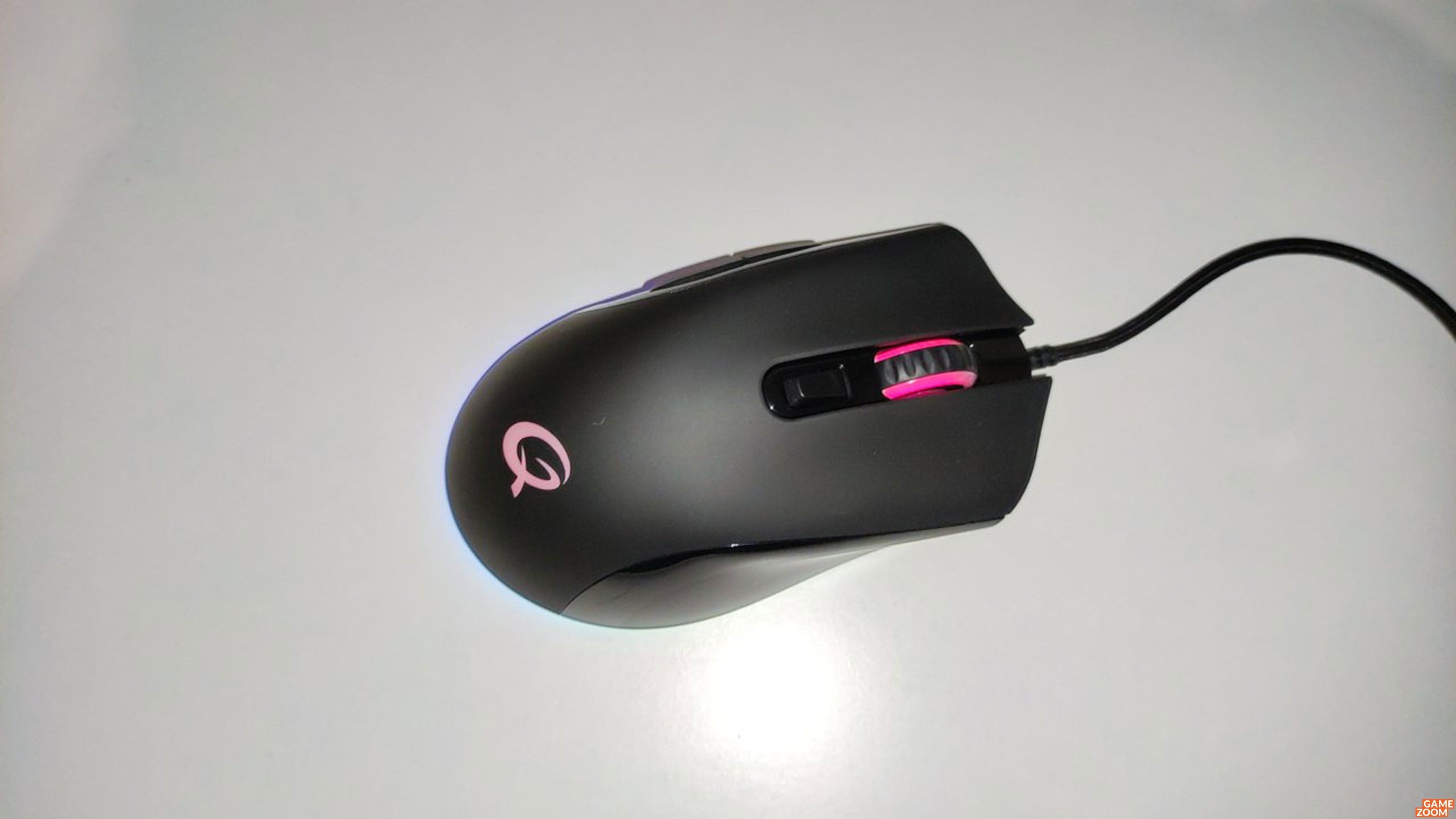 Zur Eingabe stehen insgesamt fünf Tasten zur Verfügung, die, aufgrund der fehlenden Software, nicht programmierbar sind. Das Zwei-Wege-Mausrad ist natürlich auch als Taste nutzbar. Unter den beiden Haupt-Maustasten befinden sich Omron-Switches (20 Millionen Klicks laut Hersteller), die über einen leichten und direkten Druckpunkt verfügen, was wir während unserer Testphase als überaus positiv empfanden. Auch das gummierte Mausrad mit mittelstarker Rasterung konnte uns überzeugen. Das stoffummantelte und flexible USB-Datenkabel misst ausreichend lange 1.8 Meter. Zwei PTFE-Gleiter an der Unterseite sorgen für eine hohe Gleitfähigkeit. Die Verarbeitung der Maus selbst überzeugt, hier gibt es nichts zu meckern. Alles passt, nichts knarzt vor sich hin und auch die Spaltmaße sind sehr gut.