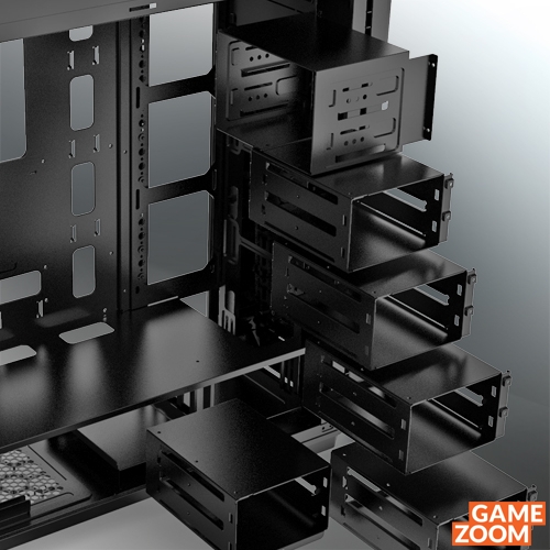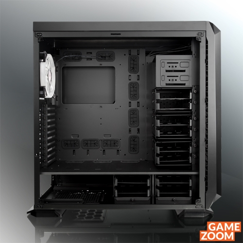 Ansonsten bietet das Gehäuse ausreichend Platz im Innenraum für bis zu 19 cm hohe CPU-Kühler, neun Erweiterungskarten, Mainboards bis zu E-ATX-Format und Netzteile bis zu einer Länge von 35 cm. Die maximale Grafikkarten-Länge beträgt ordentliche 47 cm (ohne HDD-Käfige).