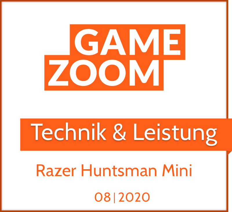 Das Highlight der neuen Huntsman Mini sind die hauseigenen Schalter namens Razer Opto Mechanic. Dabei handelt es sich um einen Hybriden mit Lichtschranke im Inneren des Tasters, die bei Betätigung geöffnet wird: Ein Sensor registriert bei erfolgtem Tastendruck einen Infrarotstrahl und löst aus. Bei unserem Testmuster hat man erstmals die Wahl zwischen dem klickenden optischen Switch (Purple) aus der Elite und dem linearen optischen Switch (Red) aus der TE. Der lineare optische Switch wurde dabei extra für die Huntsman Mini optimiert und bietet nun eine Geräuschdämpfung aus Silikon, die die Lautstärke beim Tastenanschlag deutlich reduziert, ohne Abstriche in Sachen Geschwindigkeit und Leichtgängigkeit zu machen.