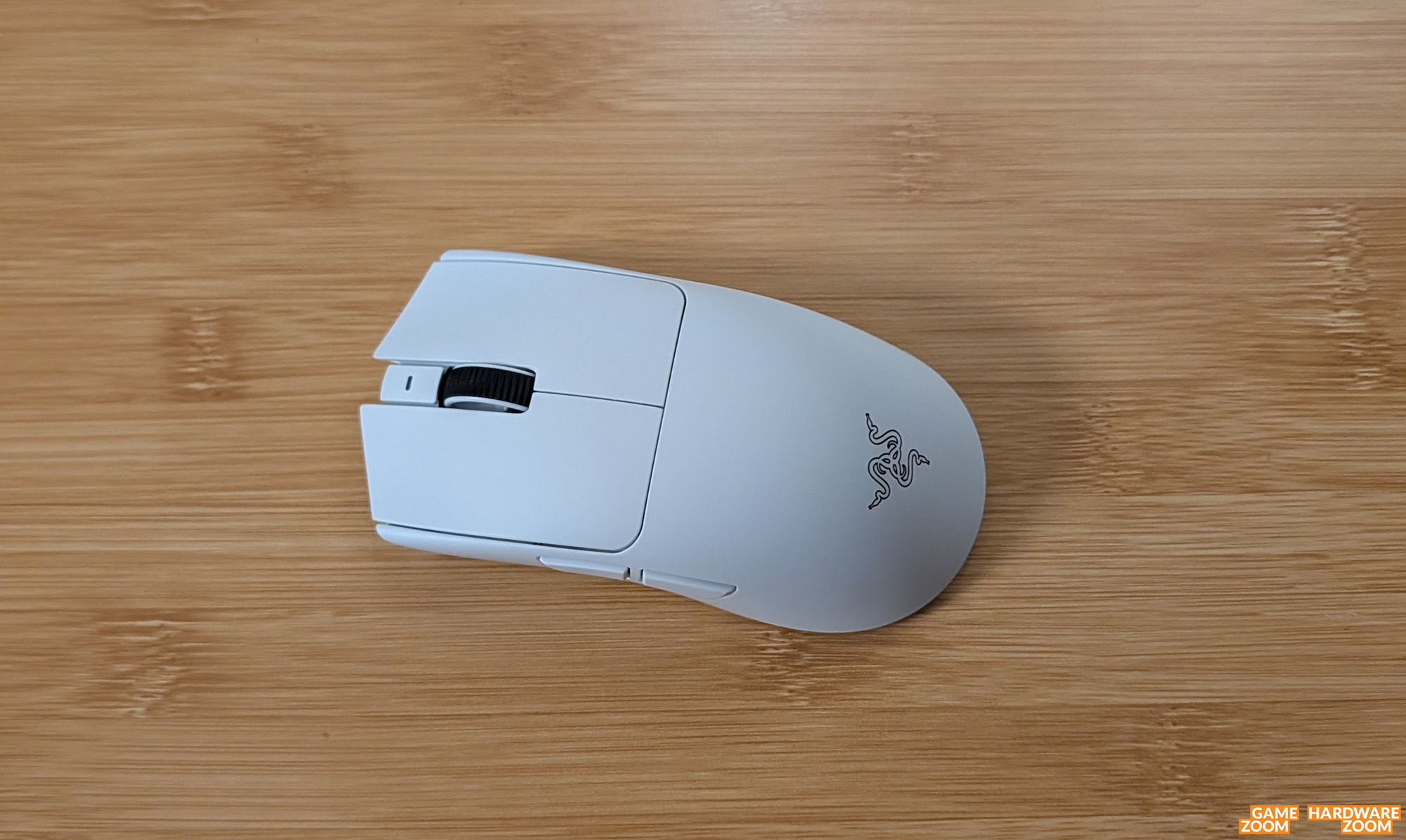 Zur Eingabe stehen insgesamt vier Tasten zur Verfügung, die allesamt frei programmierbar sind. Das Zwei-Wege-Mausrad selbst ist natürlich auch als Taste nutzbar. Unter den beiden Haupttasten wurden hauseigene Schalter verbaut. Die neuen Razer Optical-Mouse-Switches der 4. Generation sind für 100 Millionen Klicks ausgelegt und lösen mit einer Aktivierung von nur 0.2 Millisekunden ohne unbeabsichtigte Doppelklicks aus. Da optische Switches mit Licht statt mit Metallkontakten arbeiten, gibt es kein Prellen, kein Debounce-Delay und keinen mechanischen Verschleiß. Das Klickgefühl überzeugt durch einen deutlich spürbaren taktilen Druckpunkt, welcher jedoch auch stark hörbar ist. Ein echtes Novum ist das optische Mausrad. Die Vorteile des angenehm direkt und präzise einrastenden und zusätzlich mit einer Gummierung versehenen Mausrads liegen auf der Hand. Die Scroll-Präzision steigt, Ghost Scrolls und Reverse Inputs werden konsequent vermieden und die Lebensdauer verdreifacht sich.