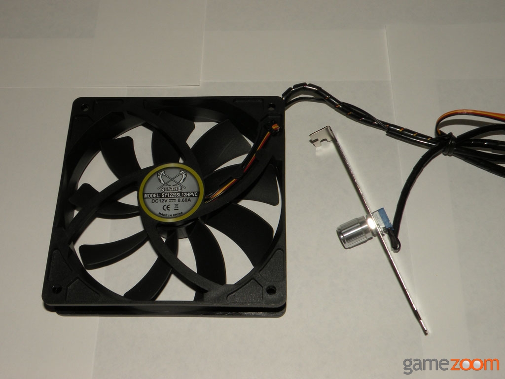 Für die Belüftung kommt der neue regelbare 120 mm Lüfter "Slip Stream 120 PWM Adjustable" zum Einsatz. Leider erzeugt der Fan bei höchster Umdrehungszahl (1.900 U/min) ein deutlich hörbares Geräusch. Silent-User sollten demnach eine niedrige Lüftergeschwindigkeit in Betracht ziehen oder sich einen leiseren Lüfter zulegen.